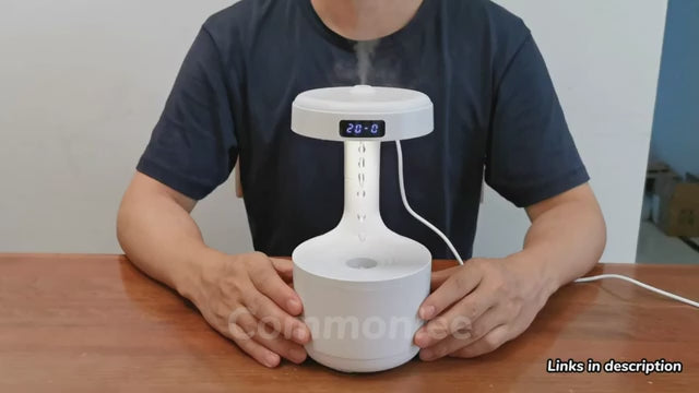A magical humidifier that defies gravity, featuring an enchanting display of water droplets flowing upward. this advanced device enhances your living space by improving air quality, enriching your breathing, and infusing delightful fragrances, all while impressing family and friends.